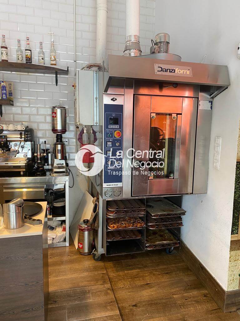•Completamente equipado: horno mixto de 9 bandejas, dos planchas, cortadora de fiambre, cortadora de pan, neveras, arcones y cafetera italiana.